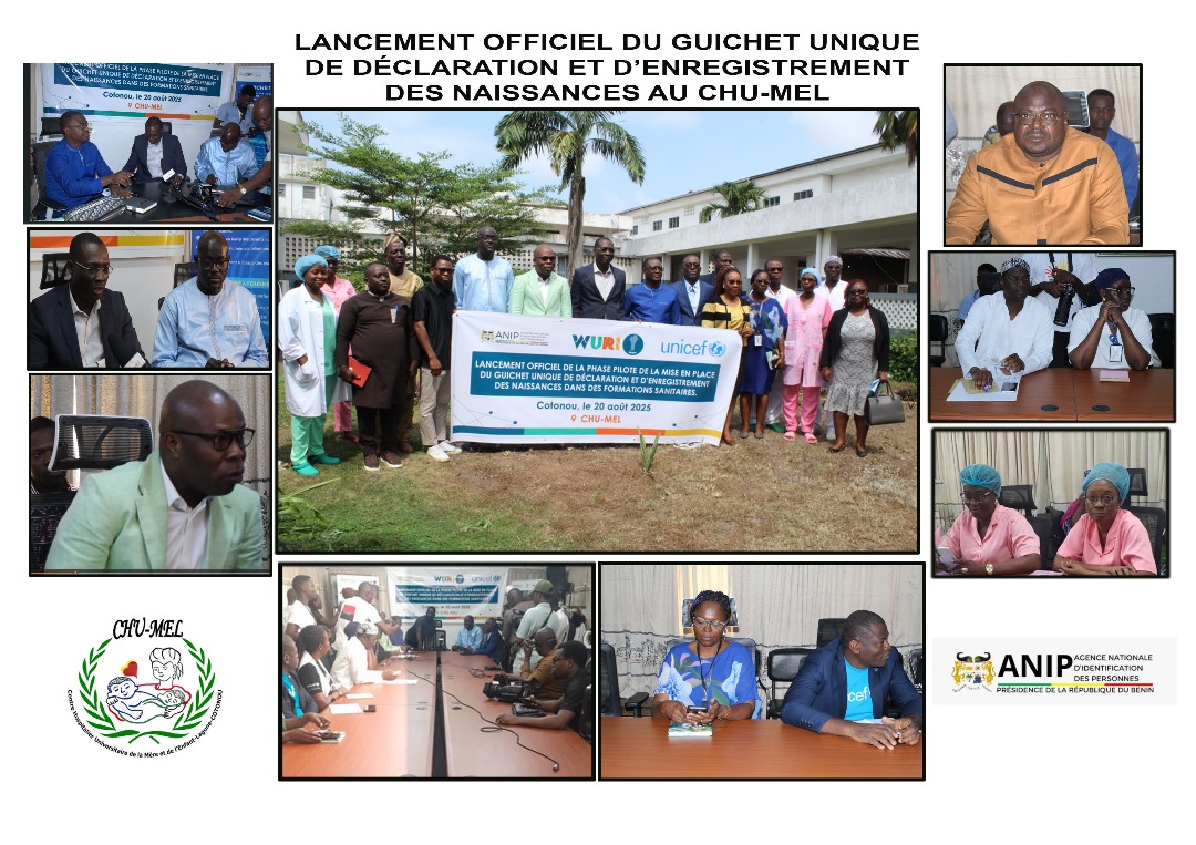 Expérimenté dans dix formations sanitaires publiques, dont le CHU-MEL, ce guichet unique évite aux parents les déplacements en mairie. Si les résultats sont concluants, le dispositif sera progressivement étendu aux autres centres publics puis aux établissements privés. #chumel, #UNICEF, #ANIP, #WORLDBANK, #WURI, #GOUVBEN
